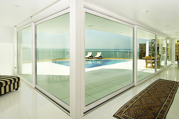 Ventana que permite abarcar hasta 6 metros de ancho en dos hojas, conservando su ligereza. Mediante un sistema de elevación, al girar la manilla la hoja se queda suspendida en un carril, deslizándose con gran suavidad. Al cerrar, la hoja se cierra herméticamente.