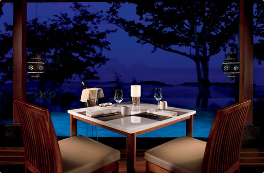 Lae Lay Pavilion, overlooking the Andaman Sea, serves dinner in a memorable setting. Surrounded by water, facing the natural park islands and illuminated by exotic traditional hanging lamps, Lae Lay specializes in seafood that is delivered fresh daily.
