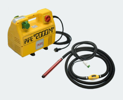 Equipo con el mayor rendimiento en vibrado de hormigones. Menos elementos de desgaste, menos mantencion. Accionado por Convertidor de Frecuencia de dos salidas. Marca ENAR.